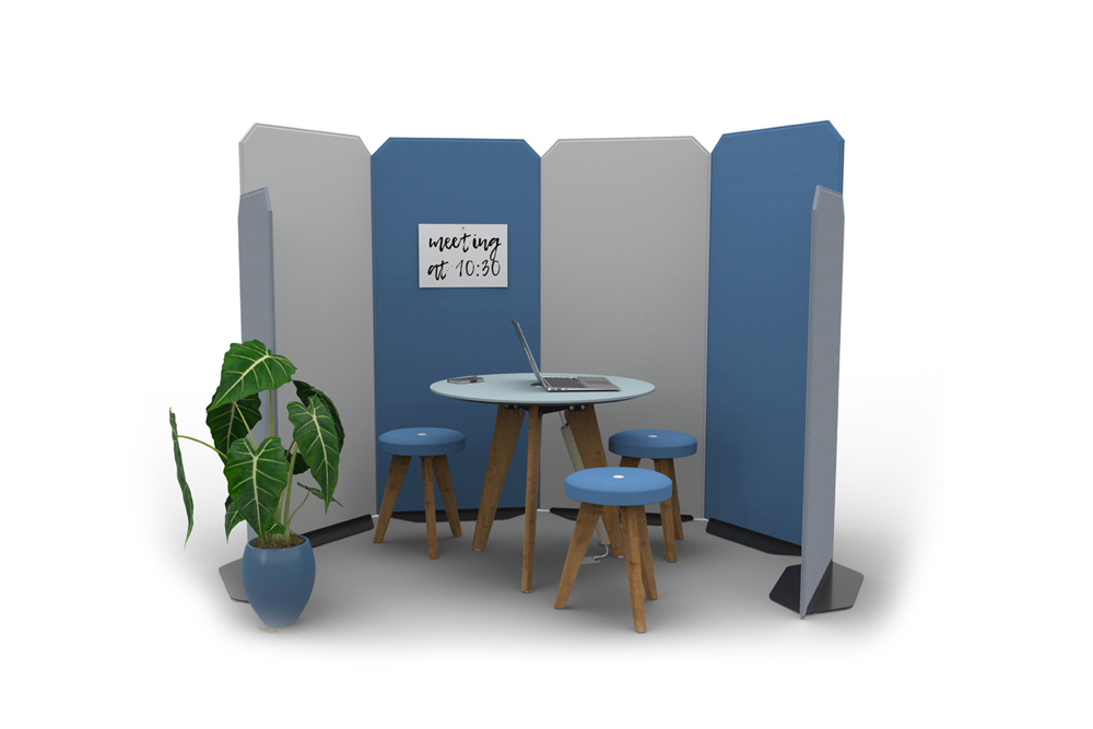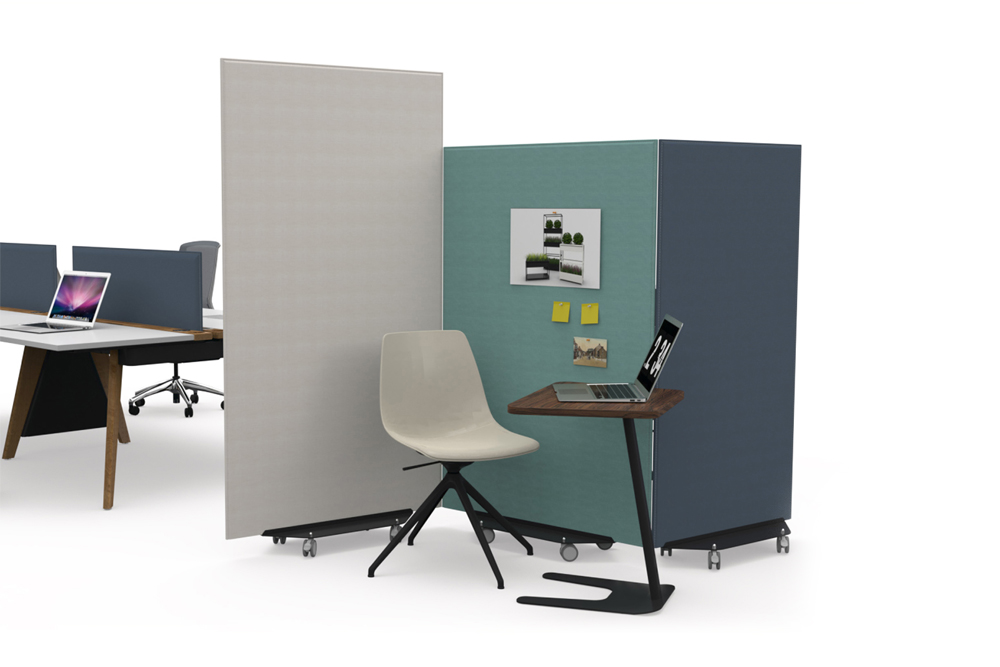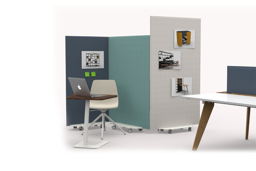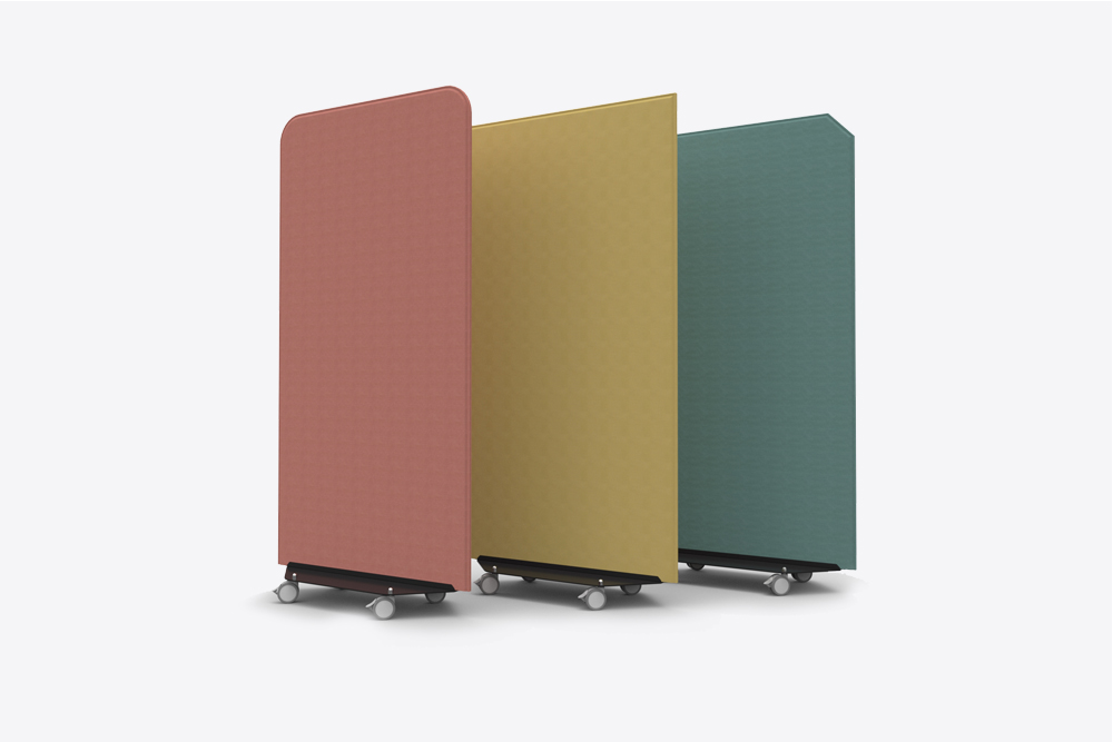 Is a simple freestanding screen system with an ultra -lightweight construction with a fully recyclable core material. Covered in wool-based fabric with a foam backing the product can be specified on a fixed or mobile base.