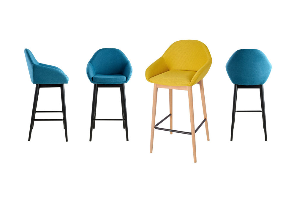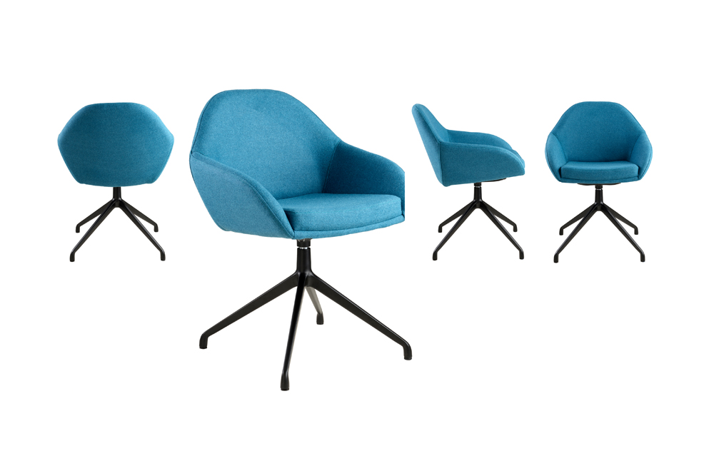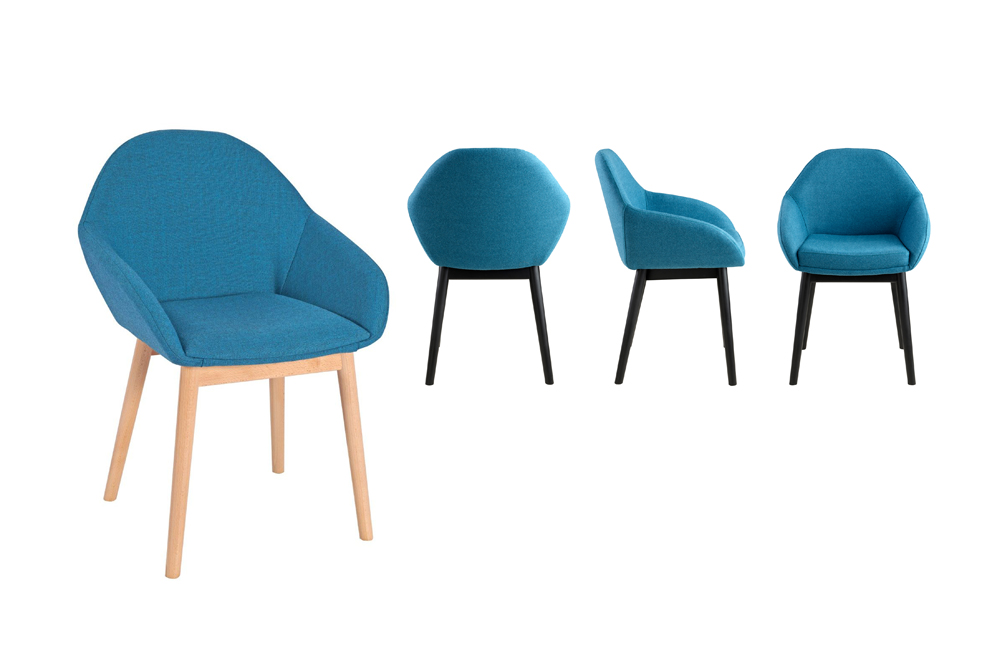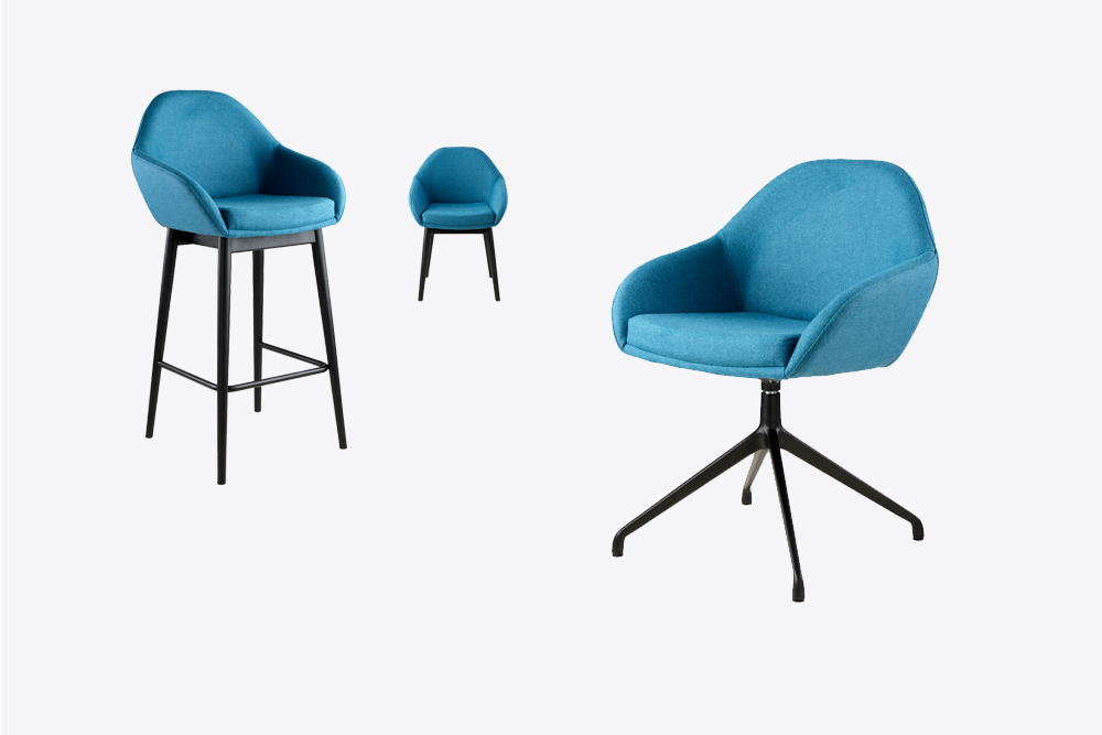 The versatile seat shell sits upon four star and five-star swivel bases, four leg base and four leg stool. The four leg options are available on a natural beech frame or stained black. The generous seat and slightly raked back are visually linked with curved arms that wrap around the sitter to deliver high levels of comfort.