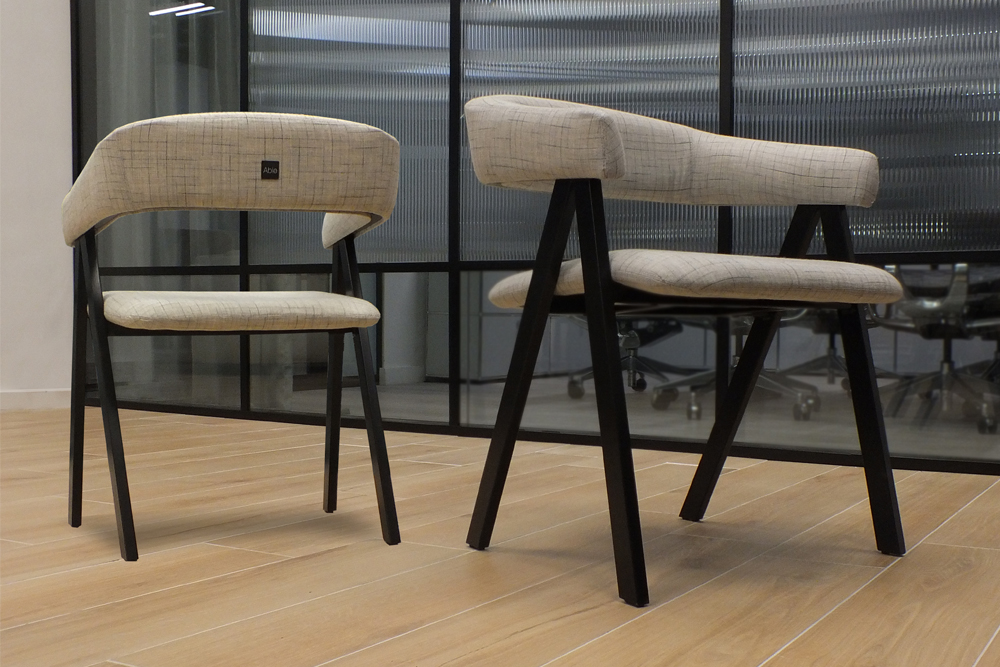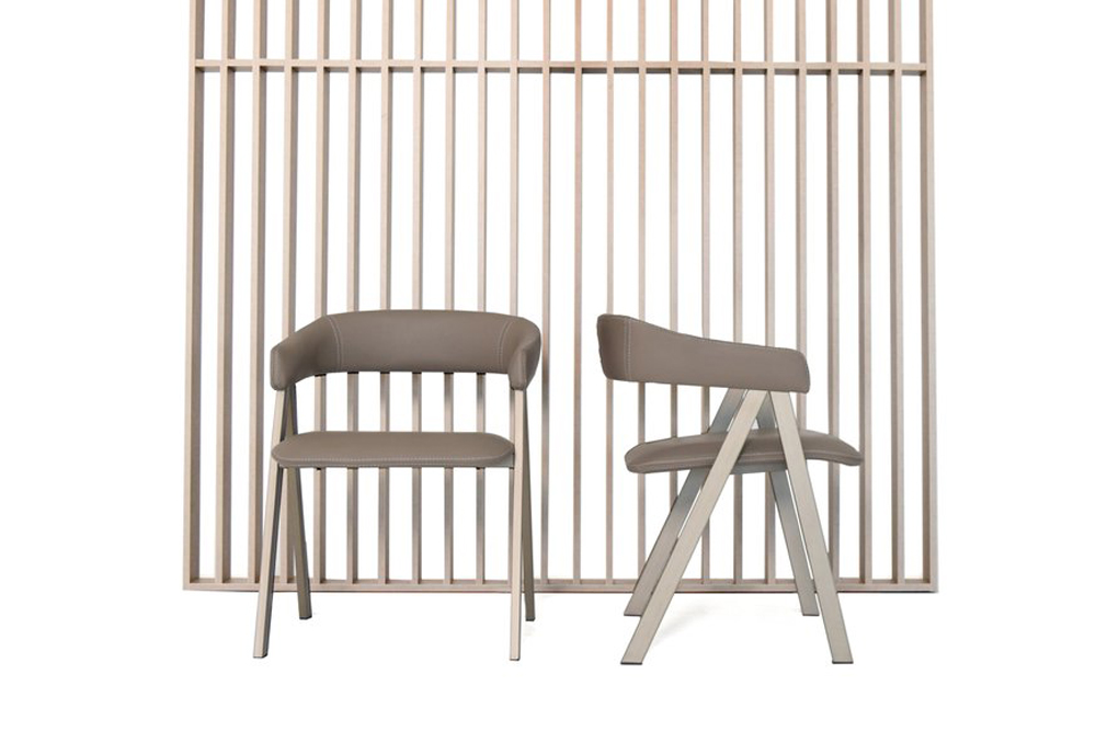 Antonia is constructed from a metal frame with contoured ply seat and single piece wrap-a-round back and arms. The upholstery provides just enough comfort and support accentuating the simple minimalist lines of the product.
