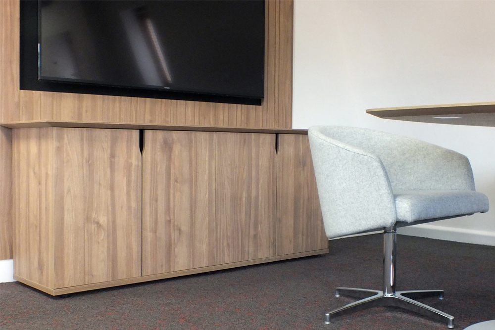 Storage credenzas with feet options, handle options, door & top options to sit alongside Alchemy meeting tables & soft seating.