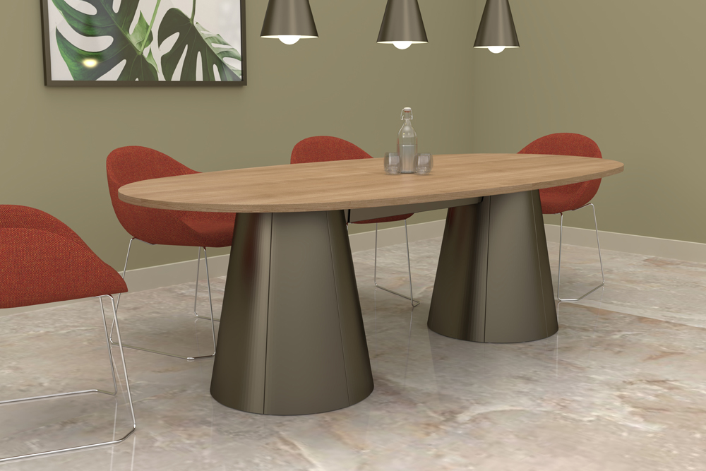 The stylish alternative to the pedestal base, the Drum table range is available at coffee, meeting and poseur table height. It can be specified as a single central table base, double base and multiple table bases supporting large multi-piece meeting tables. The base can be painted in a range of eight colours or covered in fabric